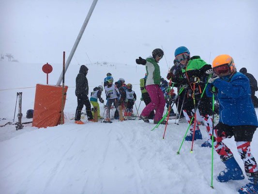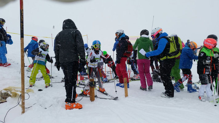 Schlechte Sicht und viel Neuschnee haben das Rennen für alle Teilnehmer zu einer Herausforderung gemacht. Die Rennläufer haben sich nicht irritieren lassen und sind ein tolles Rennen gefahren, Daumen hoch für alle, ganz besonders für alle Bambini!