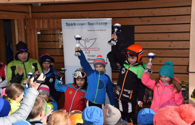 Wir gratulieren allen Rennläufern, besonders den Tagessiegern bei den Kindern: Hanser Hannah vom WSV Hippach und Thomas Stubenböck vom WSV Wiesing sowie der Bezirksmeisterin der Schüler Lena Neuhauser vom WSV Achenkirch